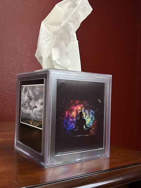 The Stress Less Box, created by Clinical Social Worker Glen Alex, relieves stress and improves mental health by enhancing mindfulness and mental flexibility. The Stress Less Box is a tissue box cover that provides a visual reminder of mindfulness and mental flexibility.